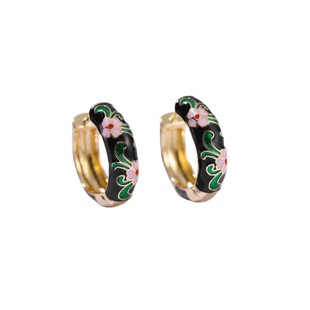- Small hoops with delicate black floral detailing for effortless everyday style